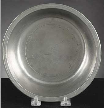 NORTHAMPTON, MASSACHUSETTS PEWTER BASIN, ca. 1790, bearing the touch of Nathaniel Frink, 2" h., 7.5" w.