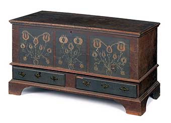Literature: A chest by the same hand is illustrated in The Pennsylvania German Decorated Chest, by Fabian, fig. 221.