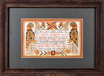 Literature: Reference: See Amsler Bucks County Fraktur, pages 221 - 225. Provenance: Boyertown, Pennsylvania estate 2013.