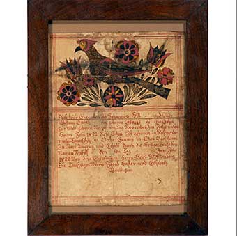 FOUR PENNSYLVANIA DUTCH WATERCOLOR FRAKTURS, 19TH CENTURY, Largest 14 x 17.75 inches.