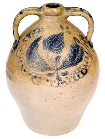 Provenance: Purchased by the consignor at Roan Auction's Sale of the Eleanor C. Stipp Collection in the 1980s. Stipp reportedly had family connections to the Harrisburg stoneware industry. Red labels on the jar's reverse and underside indicate the piece's maker and Stipp provenance.