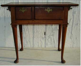 PENNSYLVANIA QUEEN ANNE WALNUT DRESSING TABLE, Ca. 1755, the molded edge top overhanging a case with three drawers and a scalloped skirt, supported by cabriole legs terminating in drake feet, retaining an old dry surface, 29" h., 33" w.