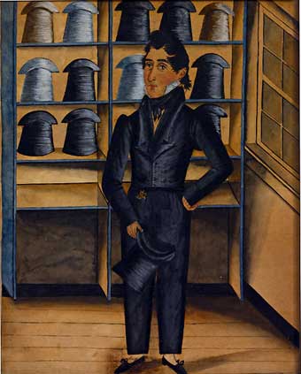 JACOB MAENTEL (1778-?), PORTRAIT OF HATTER JOHN MAYS OF SCHAEFFERSTOWN, WATERCOLOR, GOUCHE, INK, AND PENCIL ON PAPER, 15.5 by 12.5 in.