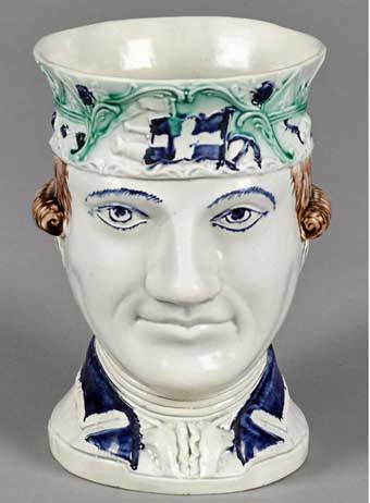 PEARLWARE PITCHER OF A NOBLEMAN, 19th c., 6.25'' h.