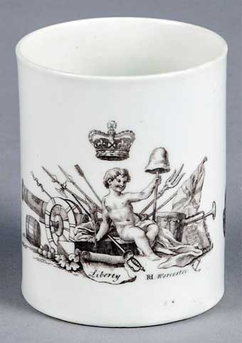 WORCESTER ROBERT HANCOCK LIBERTY MUG, late 18th c., 3.5'' h.