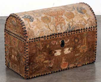ENGLISH CANVASWORK DOME LID BOX, 18th/19th c., 15.75'' h., 22'' w.